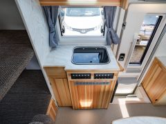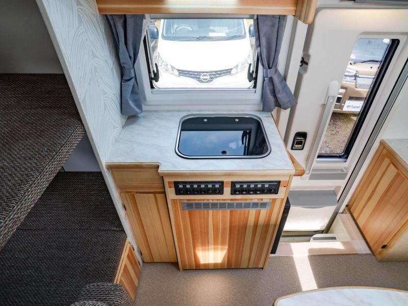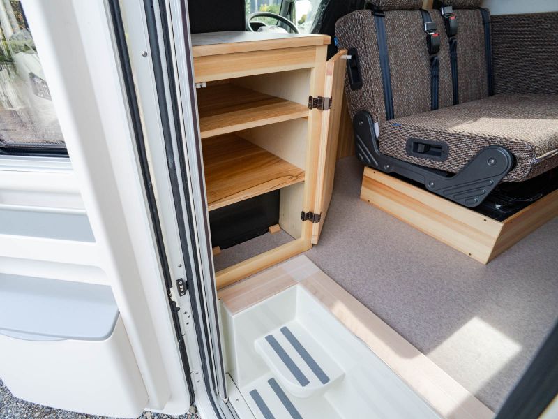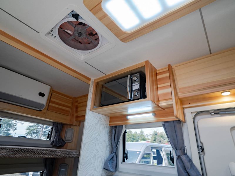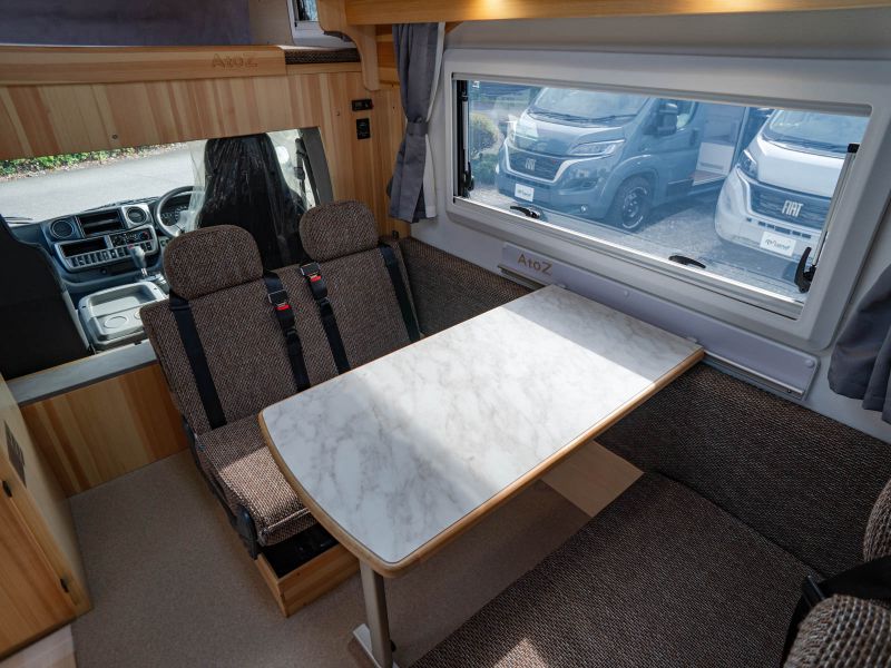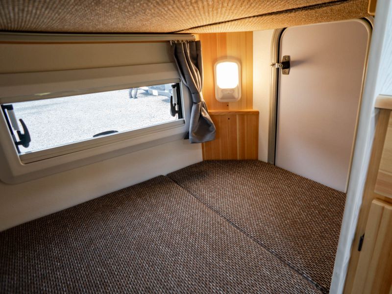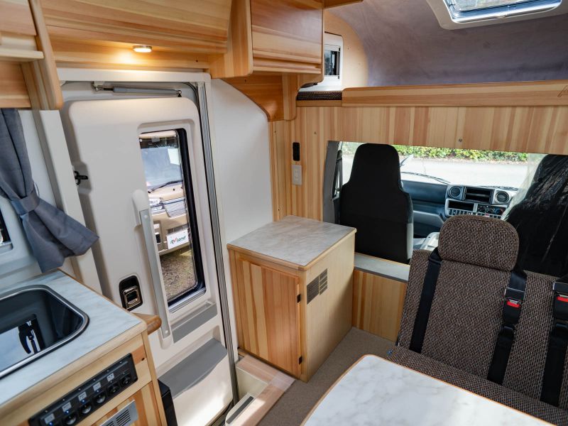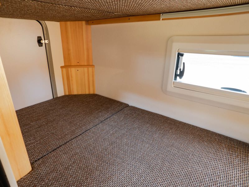 マルチルームレスで対座ダイネットとリアの2段ベッドの組み合わせでにすることで短い全長を可能にしました!コンパクトなボディに充実装備のキャブコンです。アールブイランド本社でご見学いただけます!