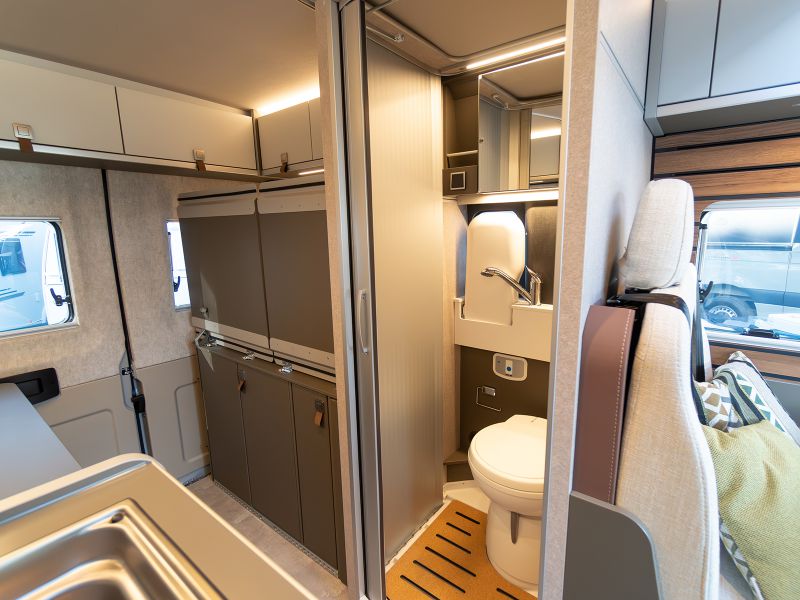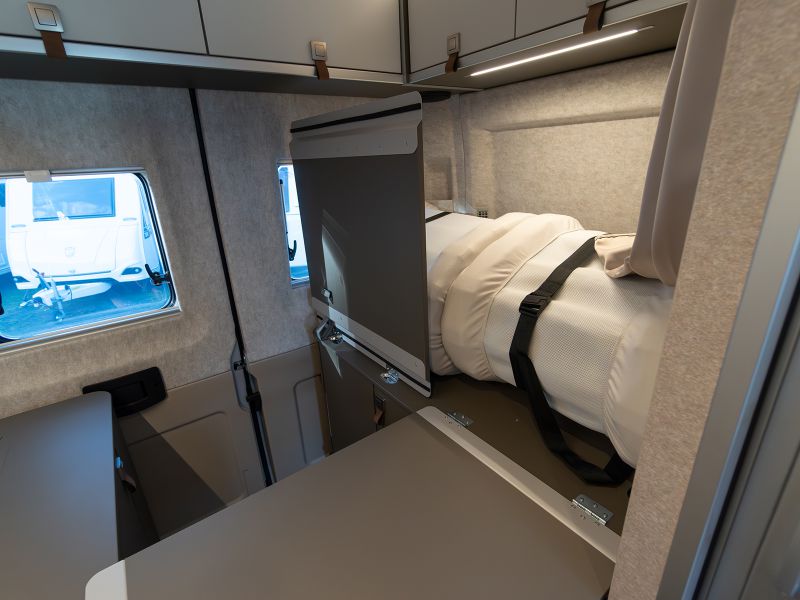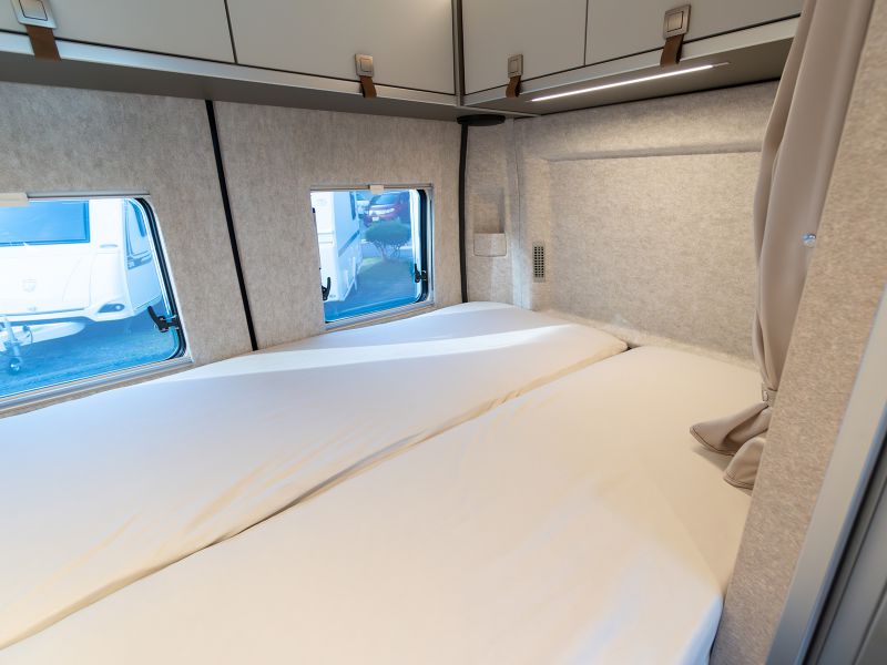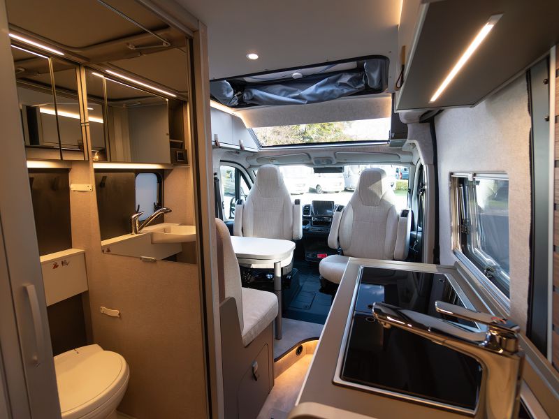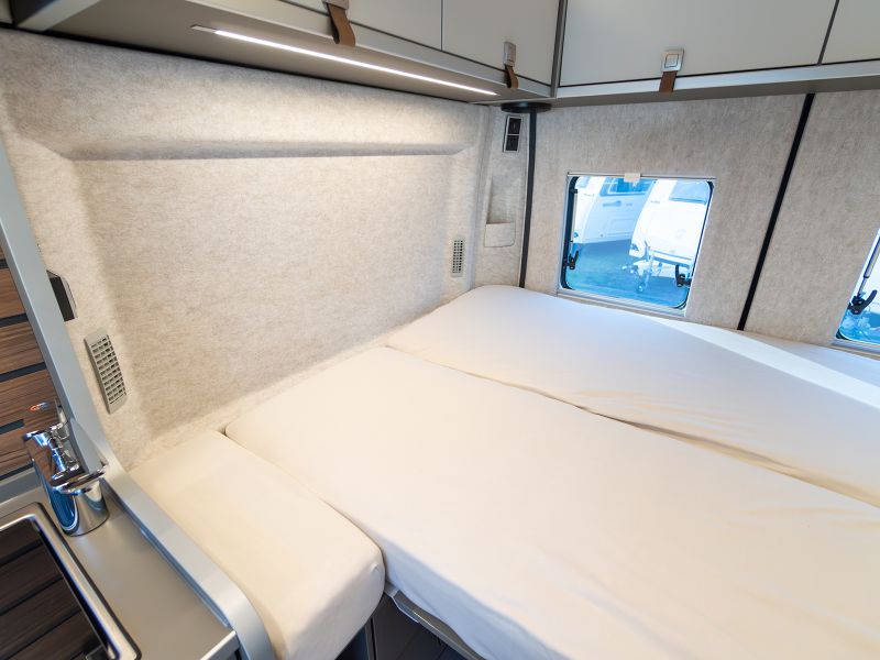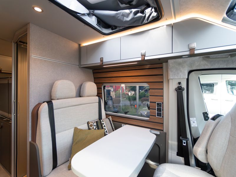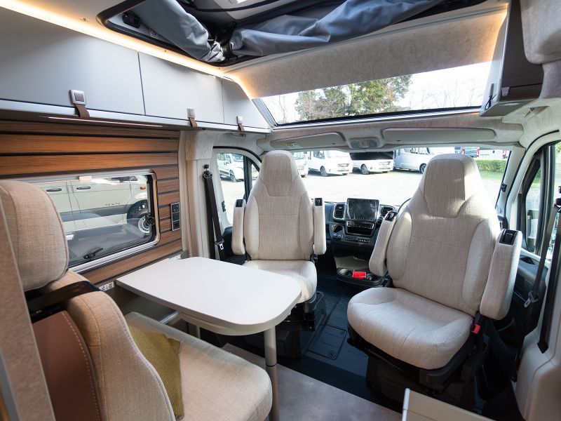 基本レイアウトを継承しつつ質感や配色を大きく変更した上質で統制の取れたインテリアデザインは、これまでで最も挑戦的で最新のHYMERデザインです。