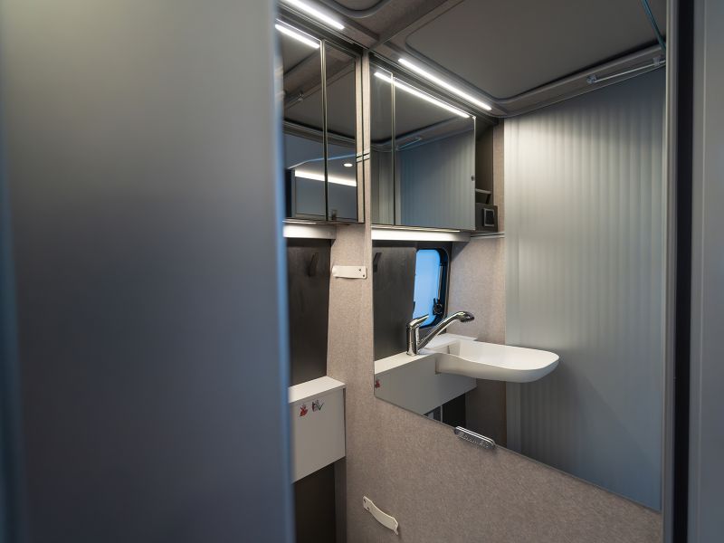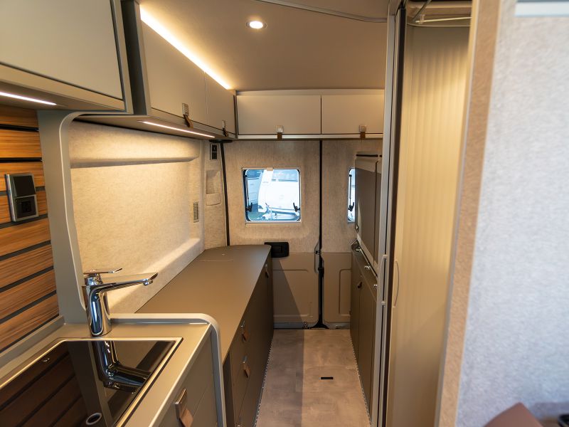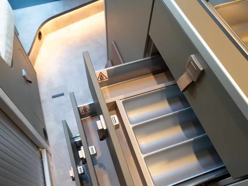 フルトリム、拡張可能なウォールフック、シートバックに角度とサイドサポートが付いた2列目シート、収納扉のハンドルはメタルとレザーのコンビネーション、給水タンクを床下に配置し収納スペースを拡張するなど意欲的な変更が取り入れられています。