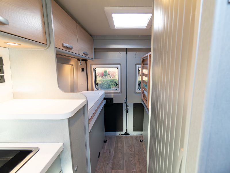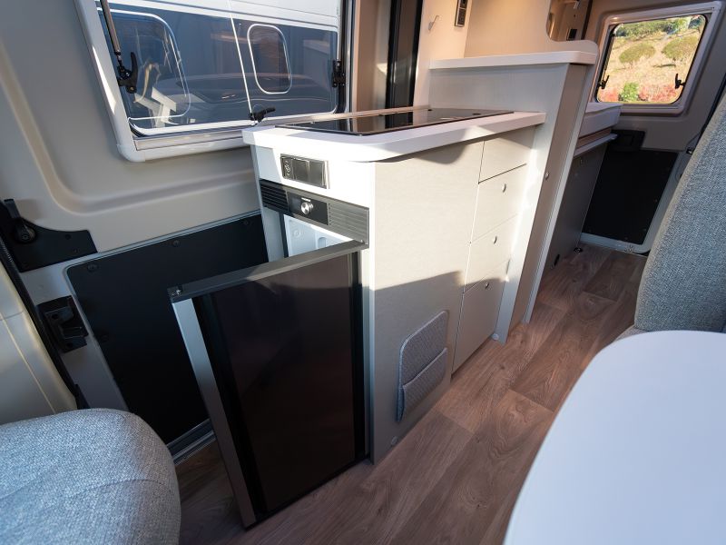 それ以外の無駄を省いた、レジャービークル=HYMERキャンパーバンの本質が感じられるモデルがFREE540です。