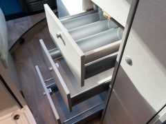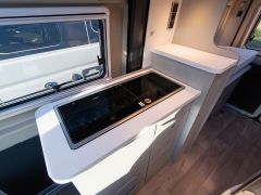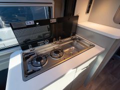 HYMER Japanでは標準で軽油式FFヒーター&ボイラーを採用し、コンロをカセットガス供給式に変えLPガスを使わない仕様にしています。