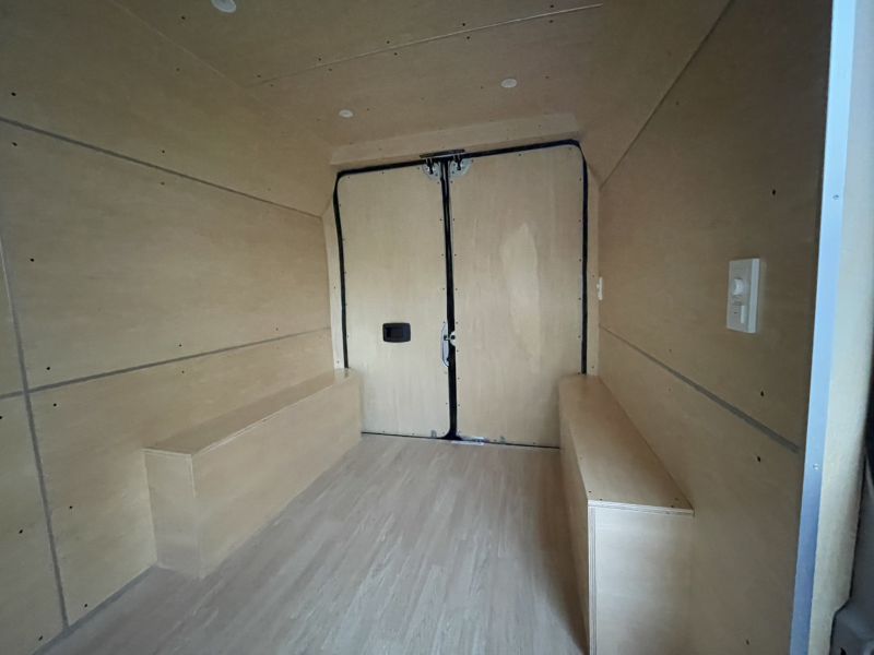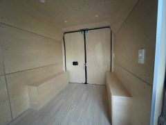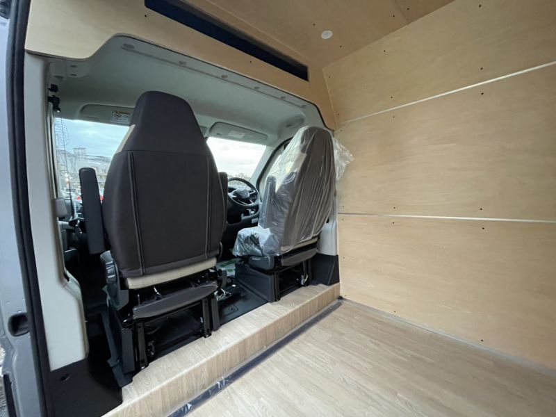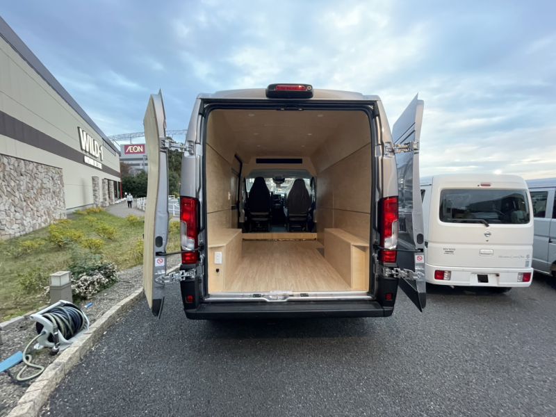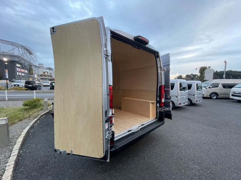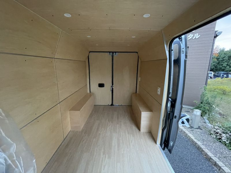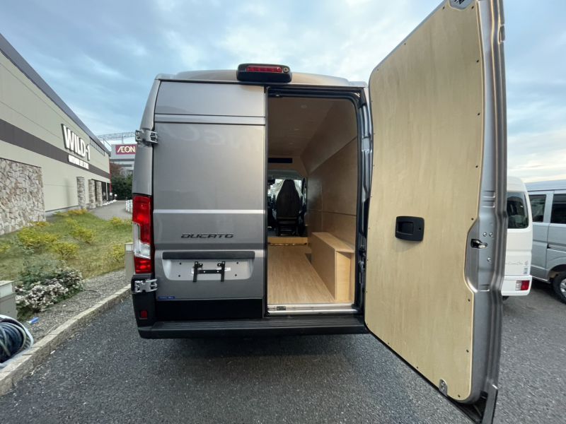 高断熱・防音制振加工、床、壁、天井のフルフラット化を熟練スタッフが施工。シナ合板で美しく仕上げました。拡張性の高いエアラインレールの埋め込みも可能。納車後すぐにご自身様で自由に空間作りがはじめられる“下ごしらえ済み車両”「デュカトベース」。あなたのアイデアを実現できるアールブイランドのオリジナル車両です。更なる可能性仕様として、セカンドシート取付や窓開け加工、エアコン取付など、その他カスタムにご対応します。