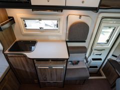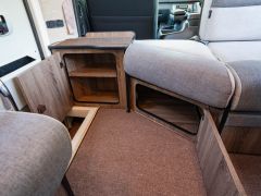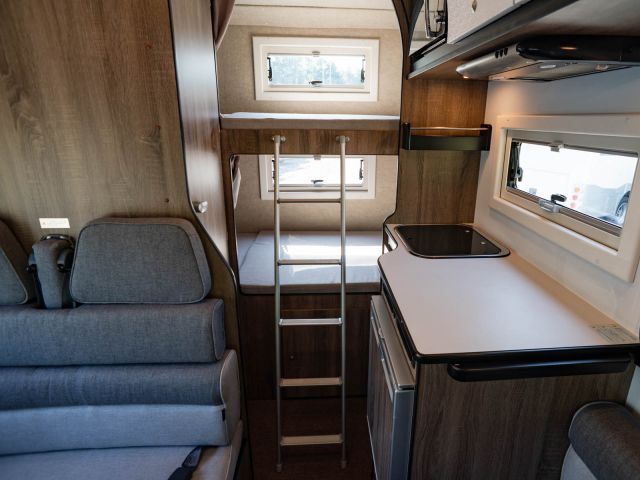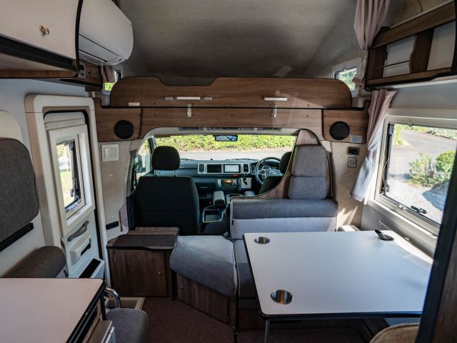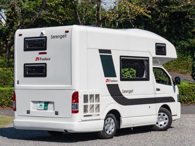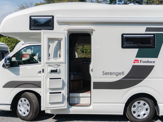 ファンルーチェのハイエースベースのキャブコン、セレンゲティ525入庫しました!令和5年式トヨタ ハイエース バンS-GL、ディーゼル2WDベース。車検は令和9年6月まであります。普通免許で運転でき、7人乗車可能。ゆったりとした常設のリヤ2段ベッに引き出すだけでマットセッティングができるバンクベッド。ダイネットエリアをベッド展開すれば、大人5人子ども2人就寝可能です。