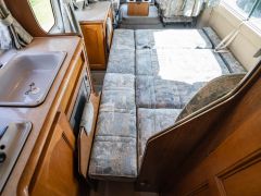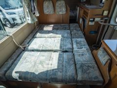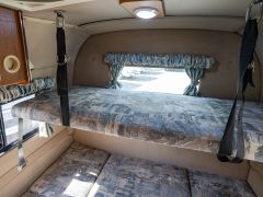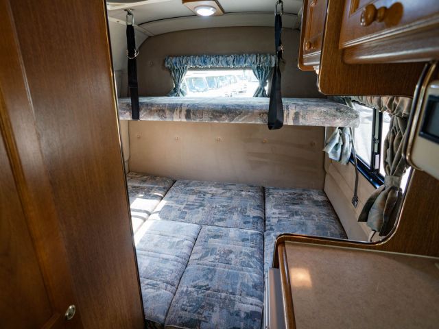 現行モデルと同じ、2リビングレイアウト。ベッド展開時はフロントの拡張マットスペースや二段ベッド仕様を利用でき、ゆとりあるマルチルームにはトイレとシャワーを備えます。