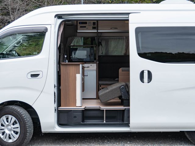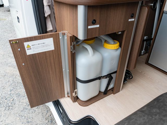 リヤスピーカー、シャワー用水タンク19L×3、サッシ式網戸2枚、デジタルルームミラー、アームレスト付フラットボード