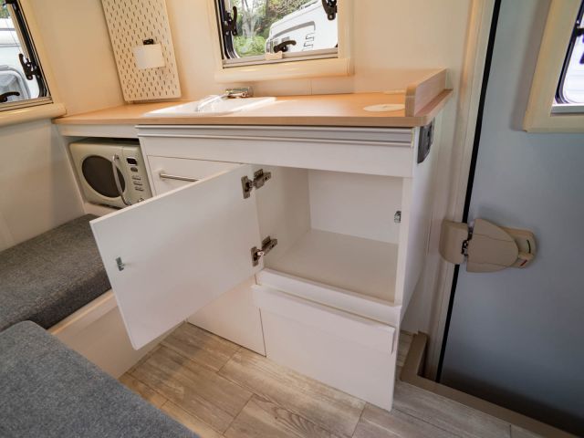 コンパクトなボディながら、収納部分も充実。OPのDC12Vクーラーも装着済車両のため、暑い時期のお出かけにも活躍が期待できる一台です!
