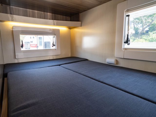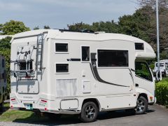 前後強化ショック、フロント強化スタビライザー、リヤスタビライザー、電動エトランスステップ、リヤサス、サイクルキャリア2台積、ポーチライト、RECAROシート×2、カセットガス供給機、レンジフード