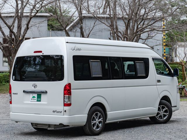 初年度登録令和5年、ガソリン4WDのトヨタハイエースキャンパー特装ベースのバンコン、アールブイランド の「ランドワゴン リノプレミアム」が入庫しました。