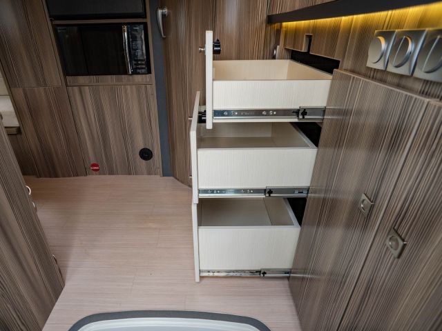 リヤスピーカー、BS自動追尾アンテナ、レンジフード、ポーチライト、エントランス電動ステップ、カセットガス供給器、前後強化スタビライザー、前後強化ショック