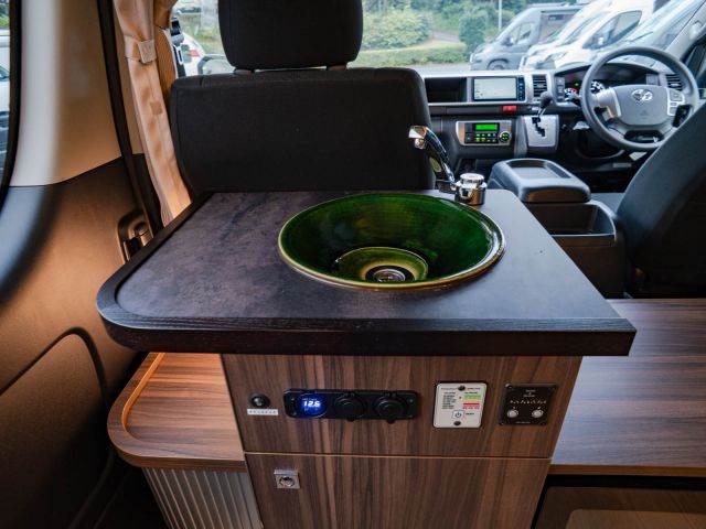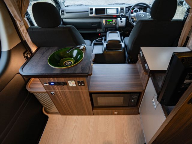 寒冷地仕様、パワースライドドア、LEDライト、サイドバイザー、PVM、リアスピーカー、シャワールーム用給排水タンク(各19L)、シャワールームベンチレーター