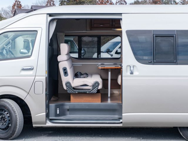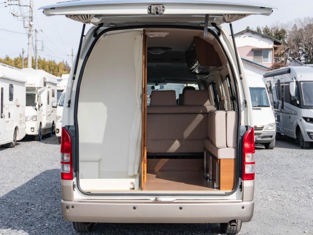 初年度登録平成20年、ガソリン2WD、トヨタ ハイエース キャンパー特装車ベースのバンコン、アールブイランドの「ランドワゴンW(EDGE)」入庫しました。