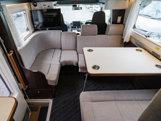 走行距離約3,000km、令和9年10月まで車検付車両です。広大なプルダウンベッドに常設の二段ベッドを配置。8人のれて6人就寝可能です。大人数で移動できて充実装備のすぐに乗り出し可能な車両をお探しの方、必見です。
