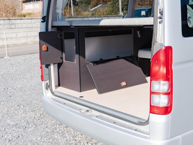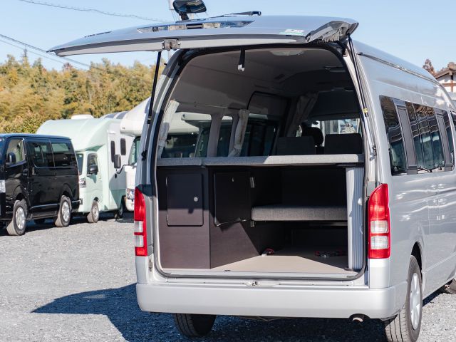初年度登録平成24年、ガソリン2WD、トヨタハイエースキャンパー特装車ベースのバンコン「ランドワゴン特注」入庫しました。