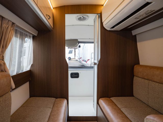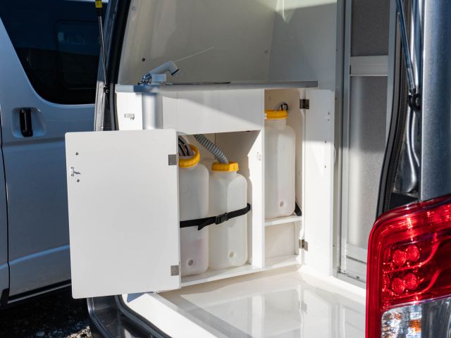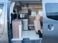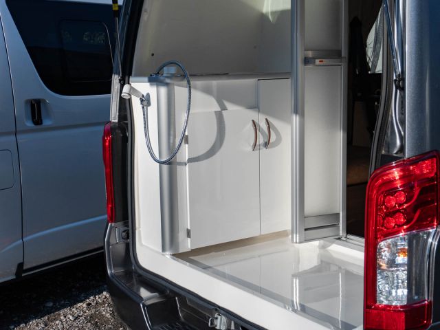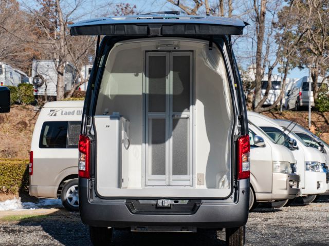 初年度登録令和4年、ガソリン2WD、日産NV350キャラバンベースのバンコン、レクビィの「イゾラ」入庫しました。