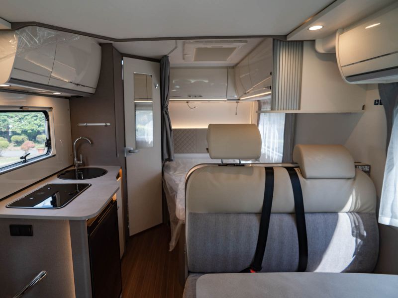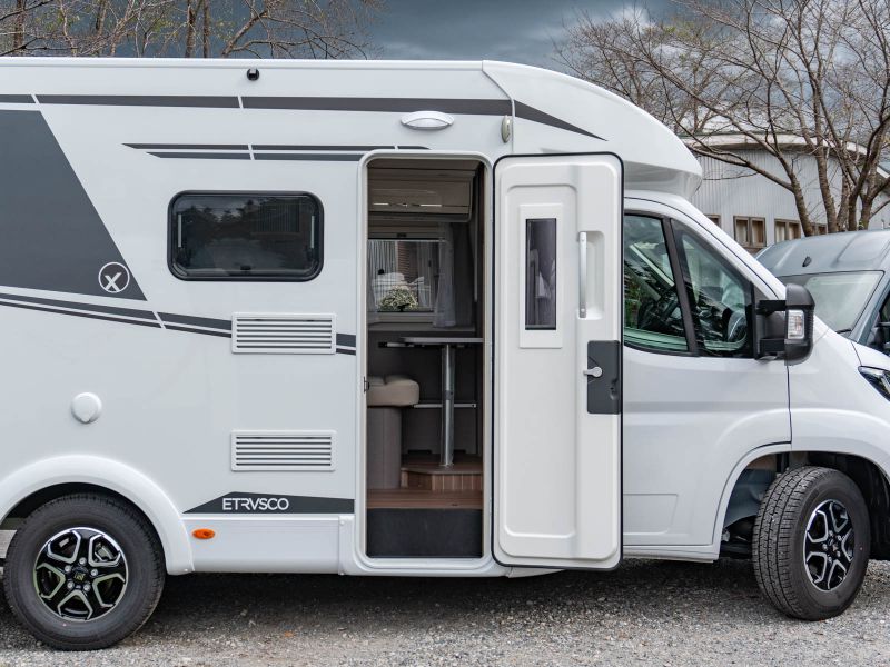 ラグジュアリーな室内空間をいつでも自由な旅へと持ち出せる、フィアットベースの6mサイズキャブコン、ETRUSCO(エトルスコ)のT5900FBが入庫しました!車体重量が3.5トン未満のため、普通免許での運転に対応する車両です。