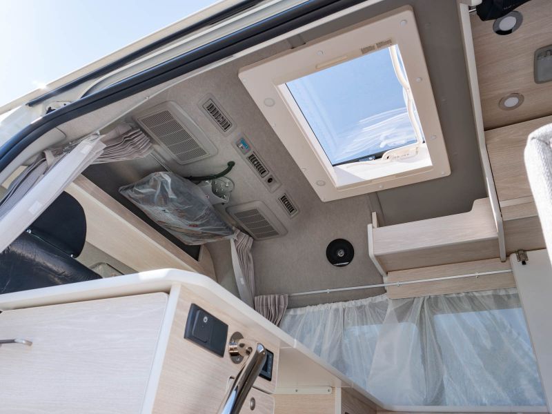 スカイライトルーフ・ベンチレーター標準装備。居住性と機能性のベストバランス。抜群の収納力と必要十分な装備。経験者ほど共感するレイアウトを実現した「Wiz」。ホームエアコン搭載モデルを展示場にてご見学いただけます!