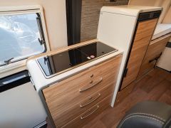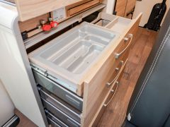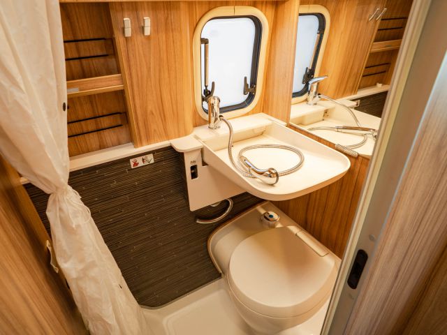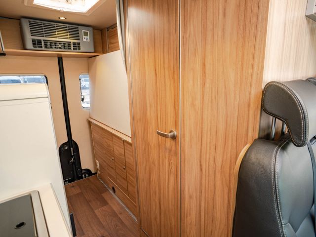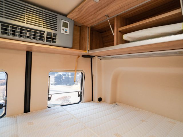 全長6m未満のボディで、輸入モーターホームの中でも扱いやすいサイズ感のモデルです。ハイマー車両の中ではコンパクトなボディに、充実したキッチンやトイレ・シャワーを完備。跳ね上げ式ベッドながら、快適な寝心地もハイマークオリティを感じさせる個体。欧州車らしい機能的なレイアウトと上質な室内空間も魅力のモデルです。