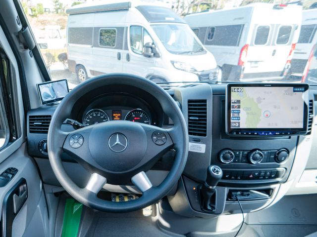 初年度登録令和3年、ディーゼルターボ2WD。メルセデス・ベンツ スプリンターベース、左ハンドル車、HYMER グランドキャニオンSが入庫しました。