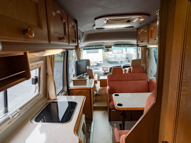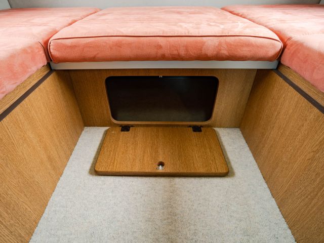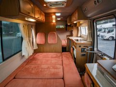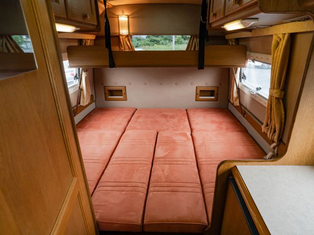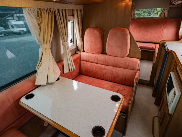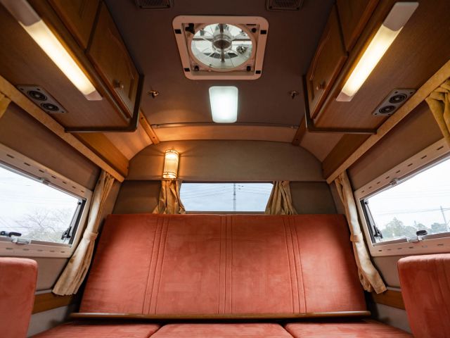 前後に独立したダイネットを備える「ツールーム・ツーダイネット」構成。リヤダイネットはテーブルレス仕様で、ベッド展開がスムーズ。さらに、現行モデルでは見られないフロントベッド拡張機能やリヤ二段ベッド仕様も装備しています。
