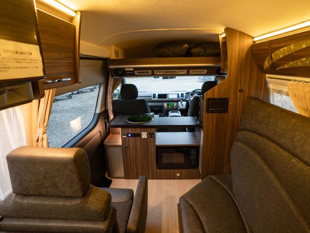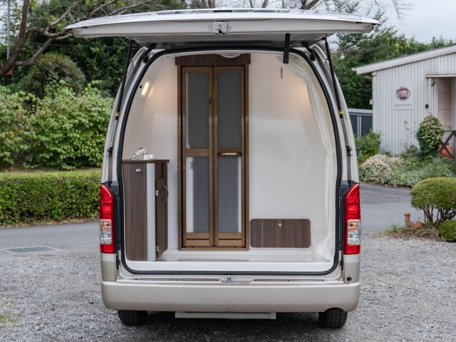 寒冷地仕様、パワースライドドア、LEDライト、サイドバイザー、PVM、リアスピーカー、シャワールーム用給排水タンク(各19L)、シャワールームベンチレーター
