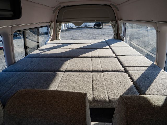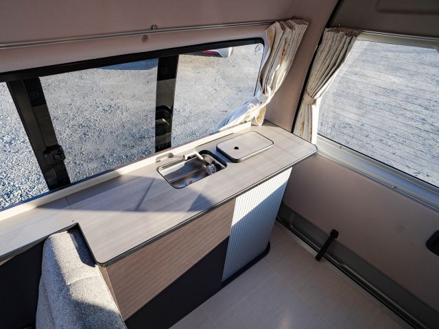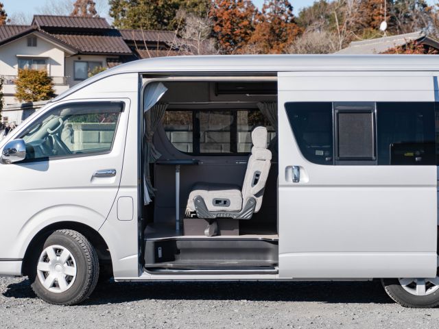 初年度登録平成24年、ガソリン2WD、トヨタハイエースキャンパー特装車ベースのバンコン「ランドワゴン特注」入庫しました。