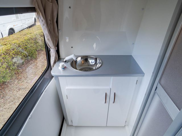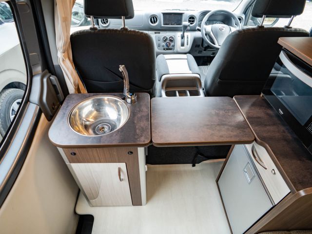 初年度登録令和4年、ガソリン2WD、日産NV350キャラバンベースのバンコン、レクビィの「イゾラ」入庫しました。