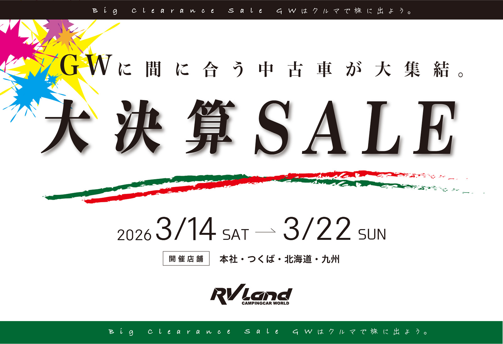 大決算セール」をRVランドグループ各店で開催いたします。